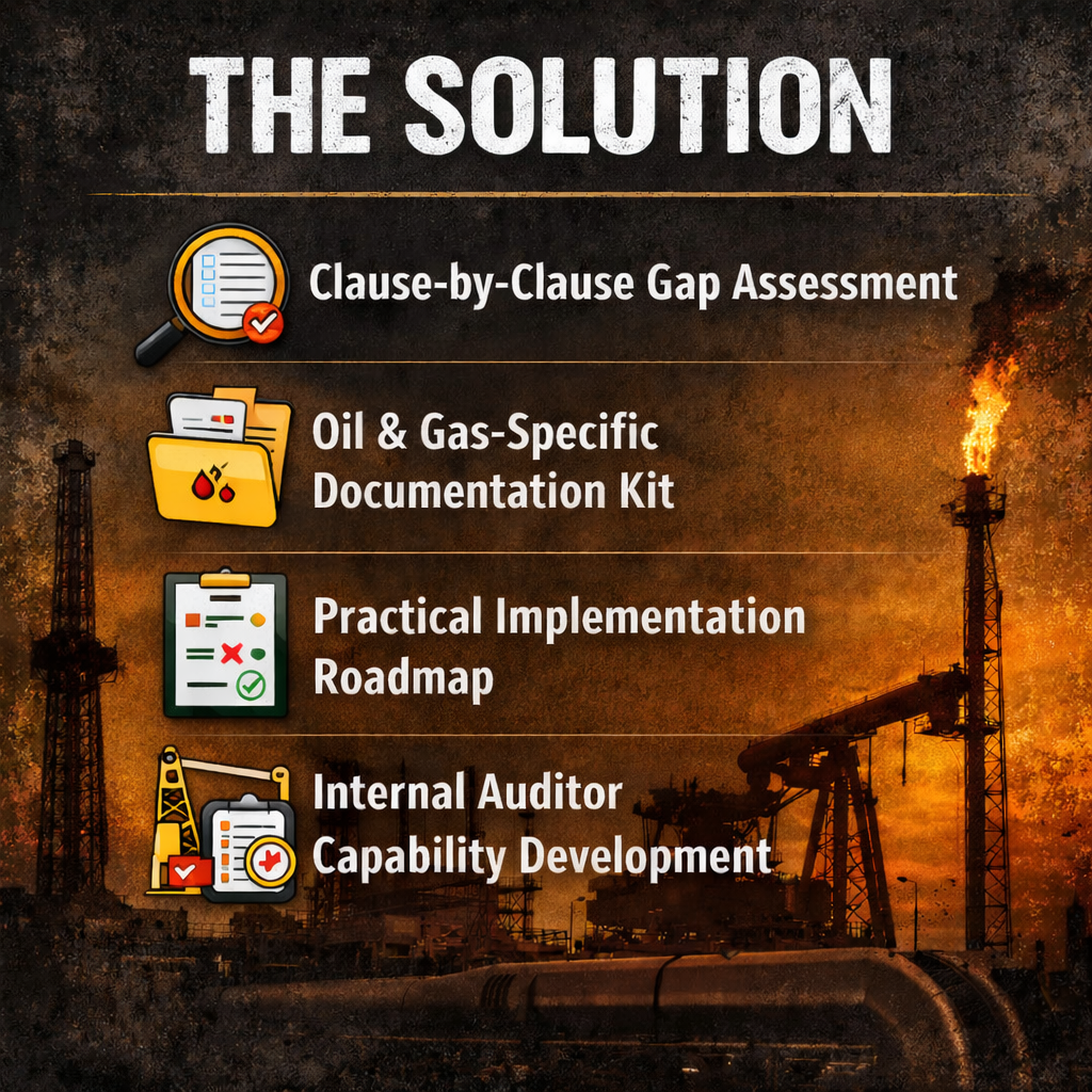 Structured ISO 29001:2020 implementation support for Sarawak-based O&G suppliers and contractors.